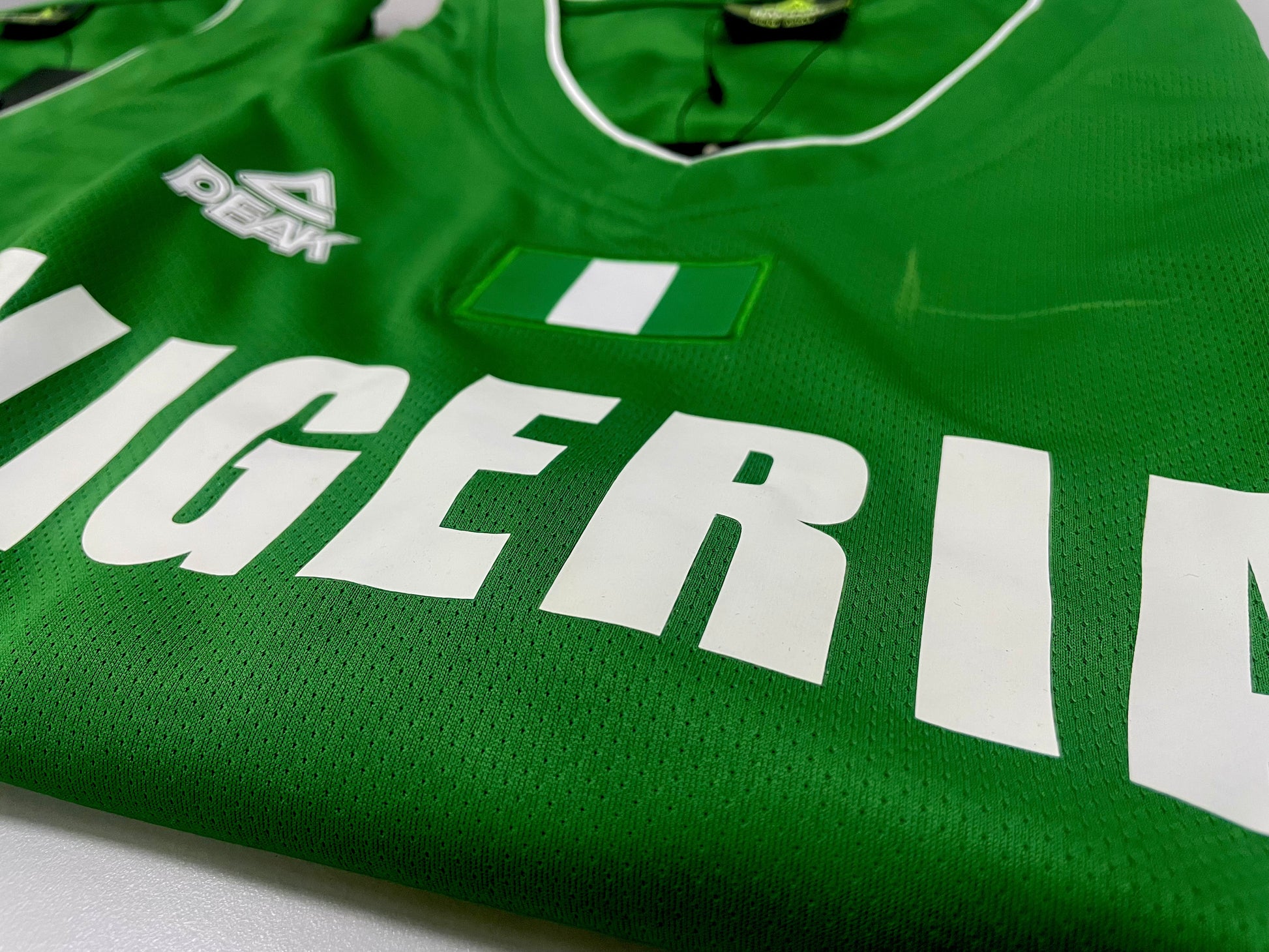 The Nigeria basketball jersey is a green sleeveless basketball jersey